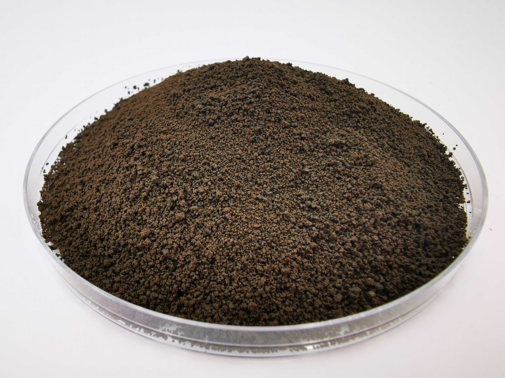 Free L-Aminoacids* 19%, total Nitrogen (N) 6%, water-soluble Boron (B) 0.05%, water-soluble Iron (Fe) 9%, water-soluble Manganese (Mn) 2%, water-soluble Molybdenum (Mo) 0.1%, water-soluble Zinc (Zn) 0.2%. (*Aminoacids obtained by Brevibacterium sp. fermentation of plant proteins).